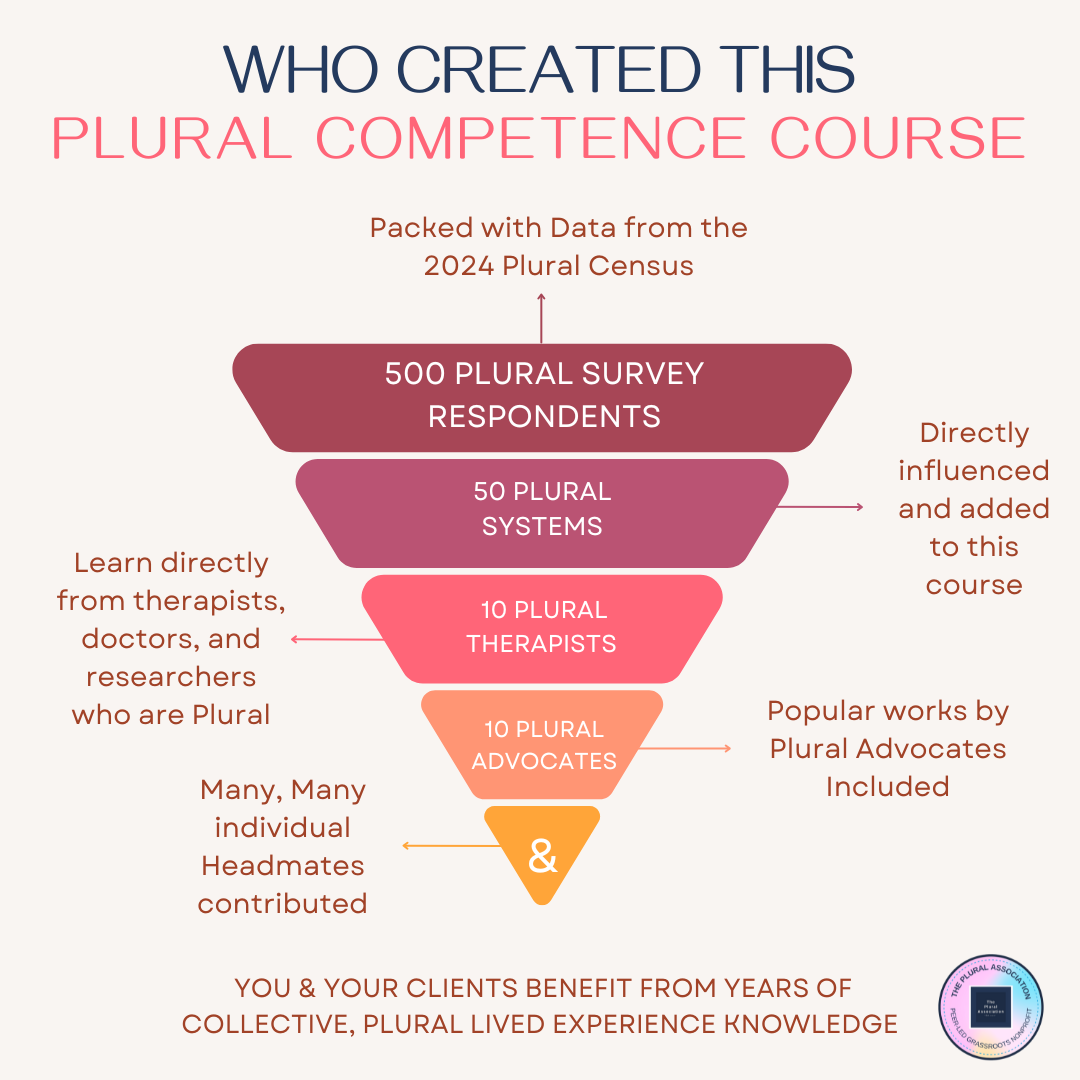 “With so many clinicians already enrolled, it’s clear this course is meeting a real and growing need — not just from the Plural community, as highlighted in The Plural Association’s 2024 census, but from professionals seeking more affirming, informed care.” - Stronghold System, founders of The Plural Association Nonprofit